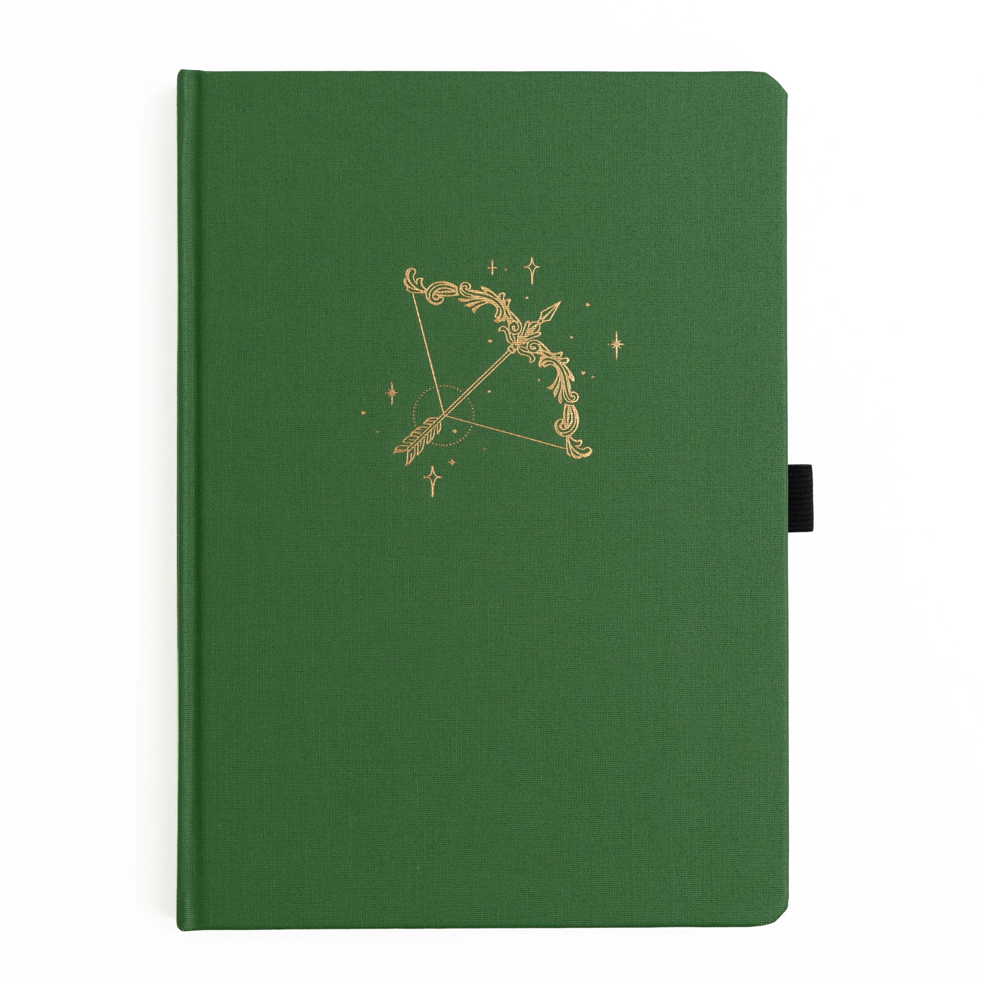 Bold and timeless, The Archer Notebook features a deep green buckram cover with a striking gold foil bow-and-arrow design, surrounded by subtle celestial sparkles for a touch of magic. The matching spine detail adds an extra layer of charm, making it as beautiful on a shelf as it is in your hands.