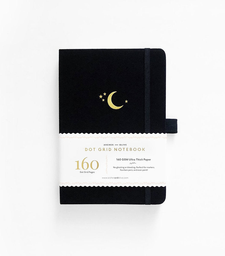 A5 Crescent Moon - White Dot Grid Notebook (Gold Edges)